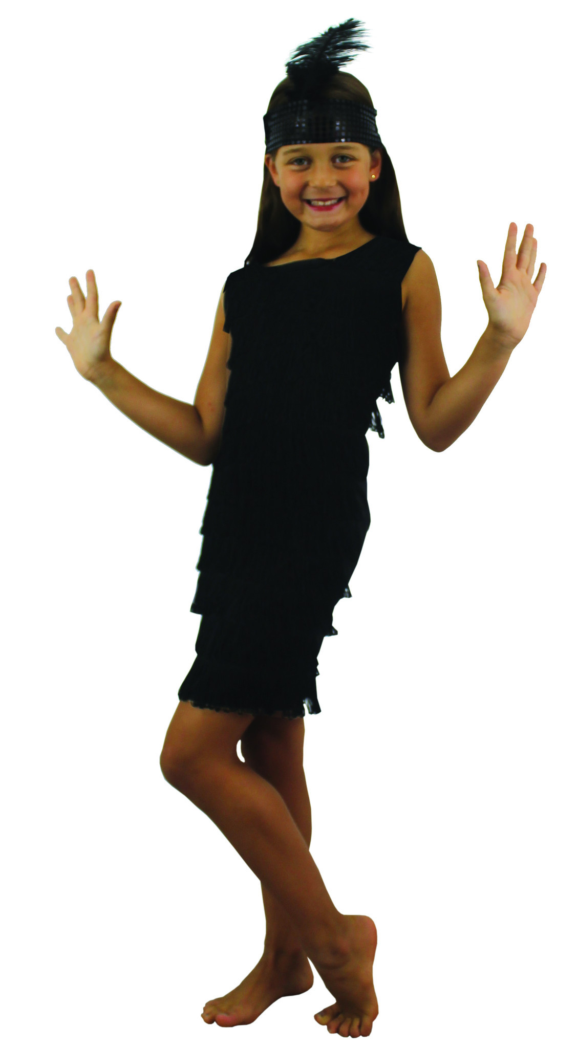 Childs Black Front Fringed Flapper Dress - ILFD7019