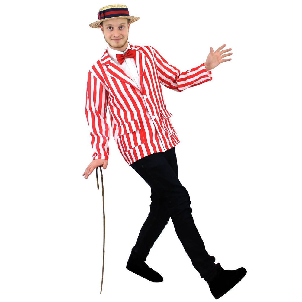 Dress to impress with this Adult Red and White Striped Blazer. Go back in time in style, and why not add the classic straw boater to really make your outfit come to life? Perfect for a period fancy dress party, especially 1920's!