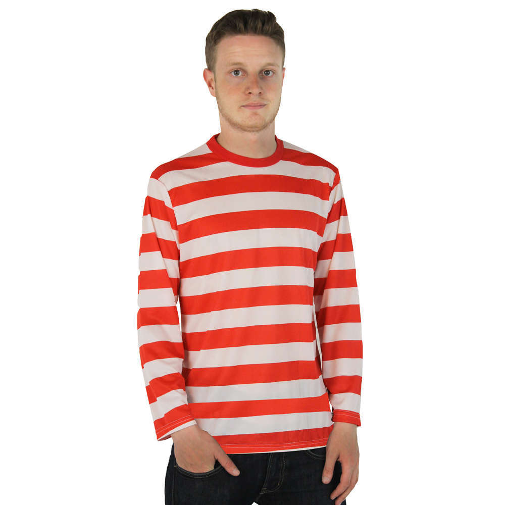 Adults Cotton Red and White Striped Long Sleeve Top - ILFD4021-COTN