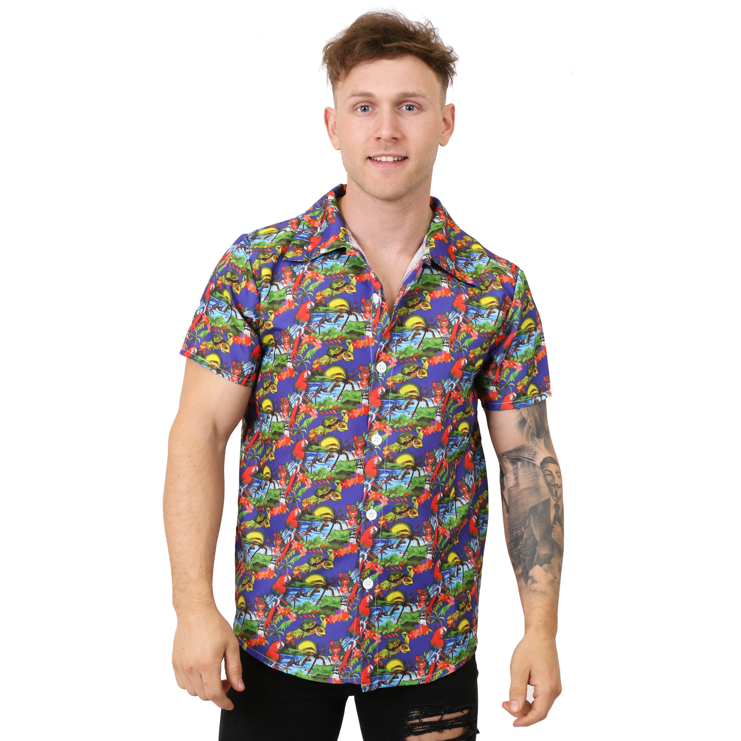Aloha! Dress to impress at your next Summer Fancy Dress Party in this Unisex Hawaiian Print Shirt! This shirt features a unique to I Love Fancy Dress Print!