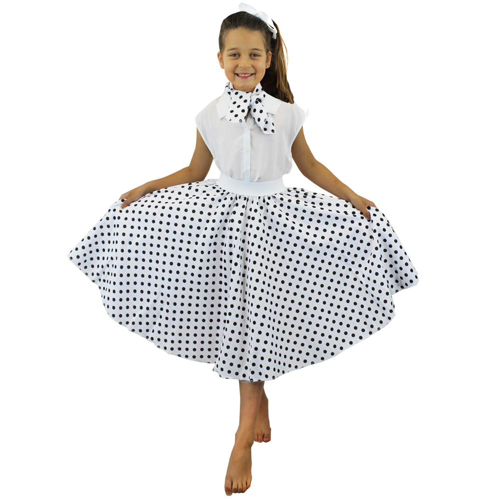 Childs Short Blue with White Dots Rock and Roll Polka Dot Skirt