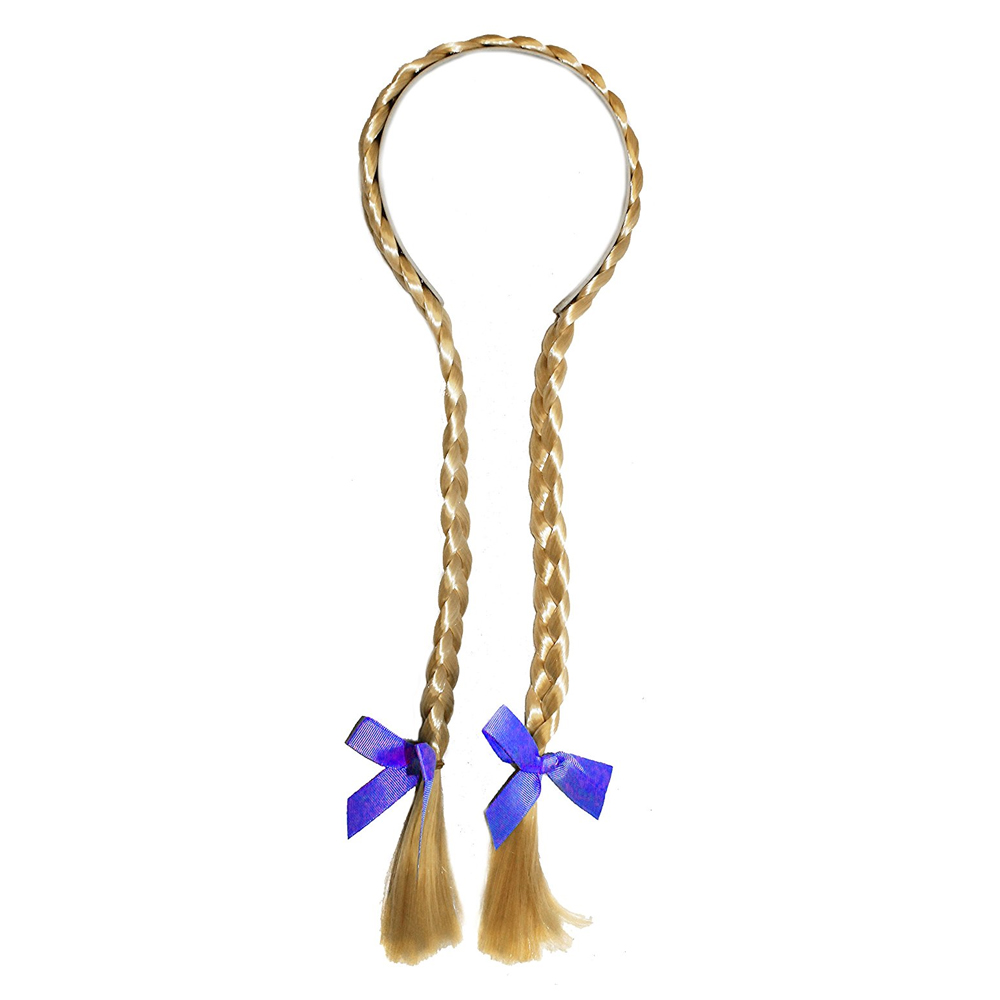 Blonde Plaits with Blue Bow