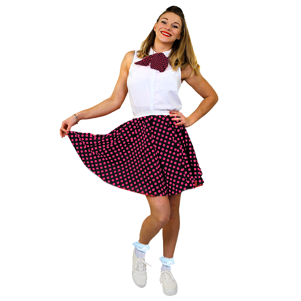 This Ladies Elasticated Short Plus Size Polka Dot Skirt and Matching Neck Scarf is a great accessory for Dance shows and Theatre Productions,1950's Grease fancy dress and Rock and Roll!