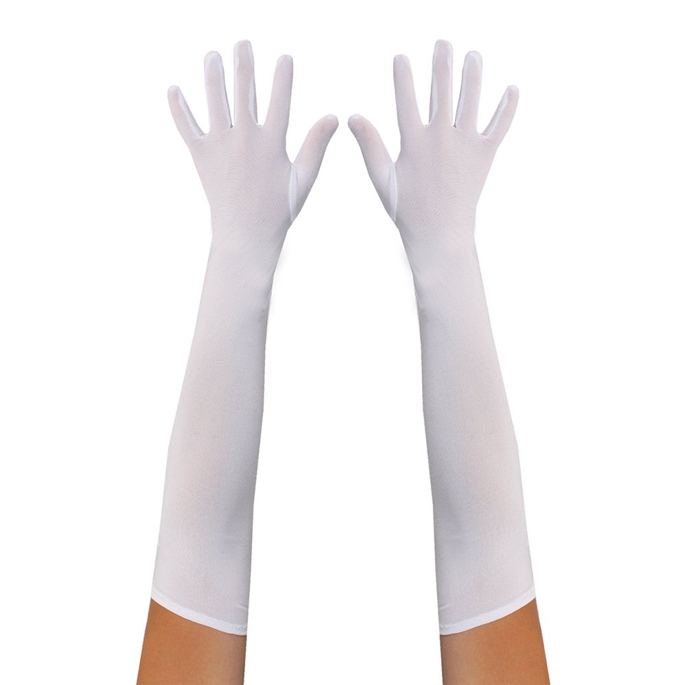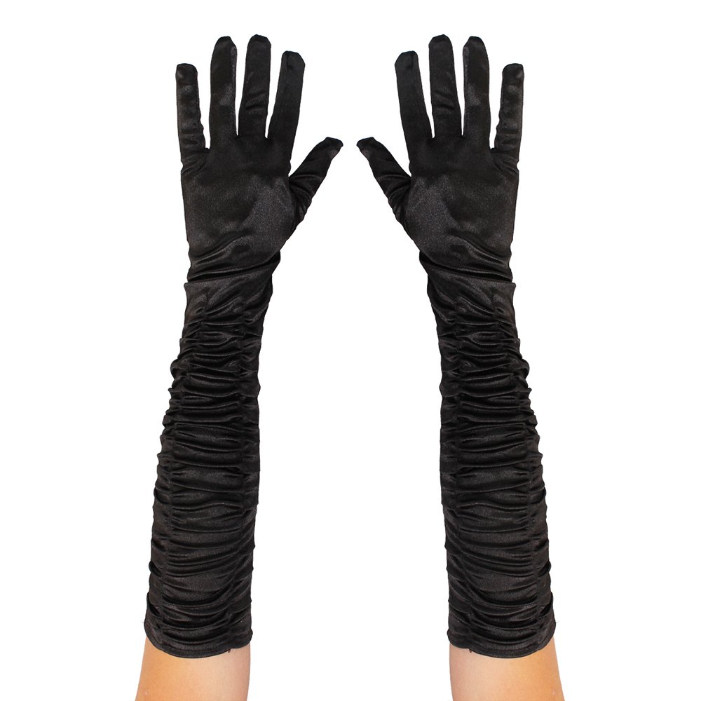 Adults Long Red Satin Spandex Gloves - ILFD268